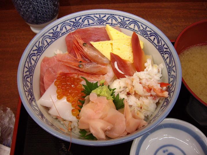 でもそんなに待てないので、向かいの空いてる食堂で海鮮丼をいただきました。