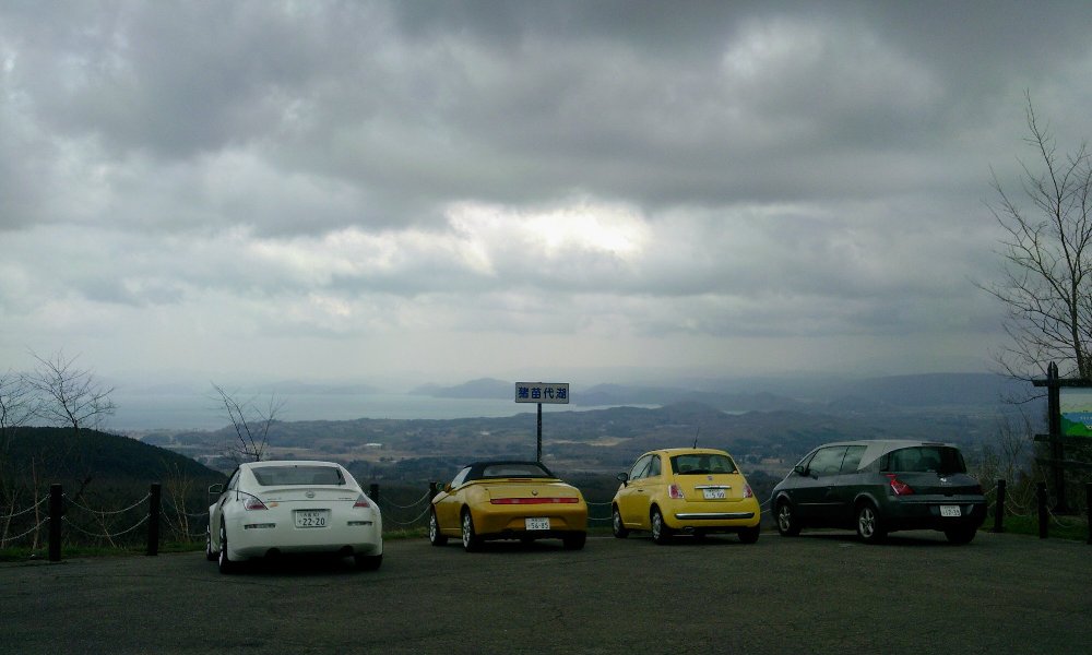 猪苗代湖を望むZ、スパイダー、500、アヴァン。
