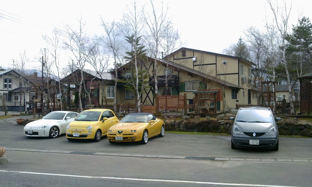 そもそもは震災と原発の影響で打撃を受けている観光地の話を聞き、磐梯の道を好きなクルマで走りながら少しでも東北の賑やかしになれば、と急遽計画した旅なのでした。とは言え支援とか大それたものではなく、単純に好きなことして少しでもお金落とせれば一石二鳥!というだけ。GW直前に呼びかけたにも関わらず、Twitterではすぐに有志が集まり、泊まりには6名、翌日のドライブにはさらに数名が加わることに。このレスポンスの早さが素晴らしいね。かくして、初めての自動車部合宿が実現!